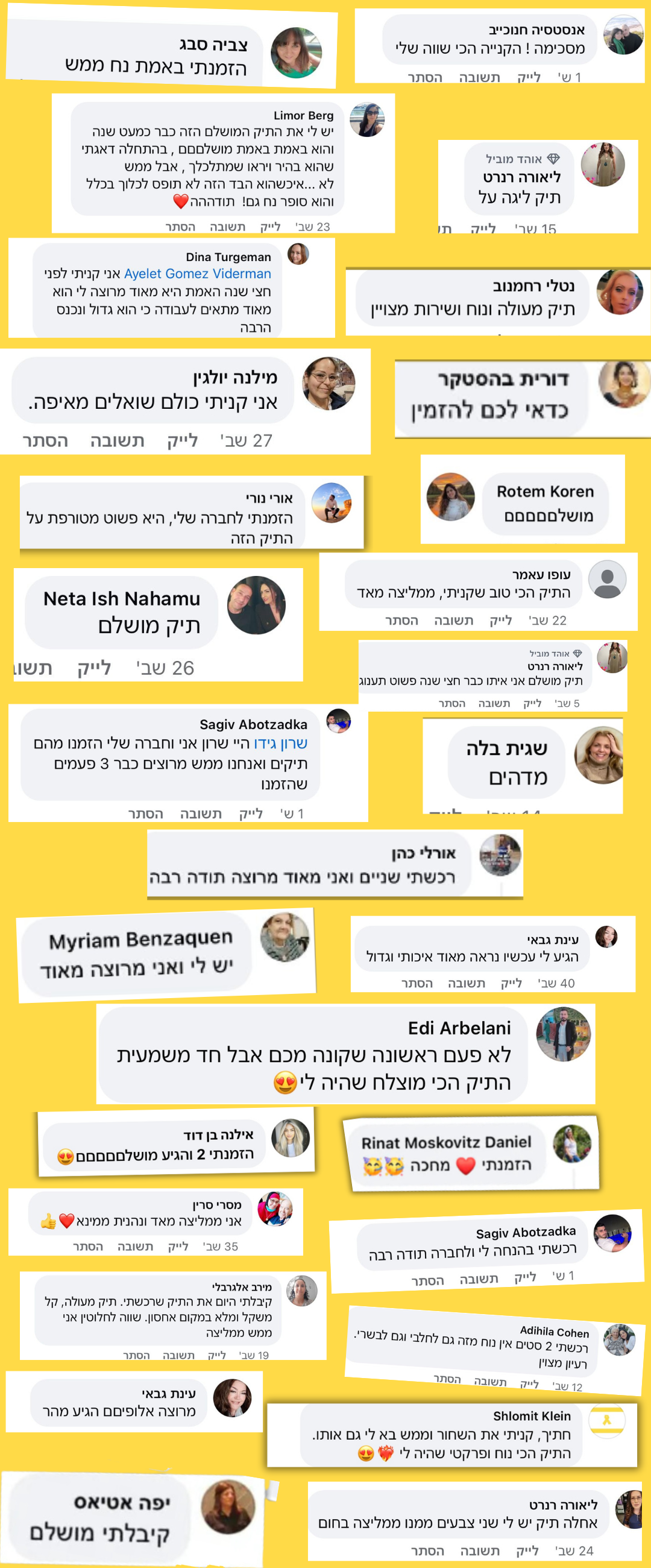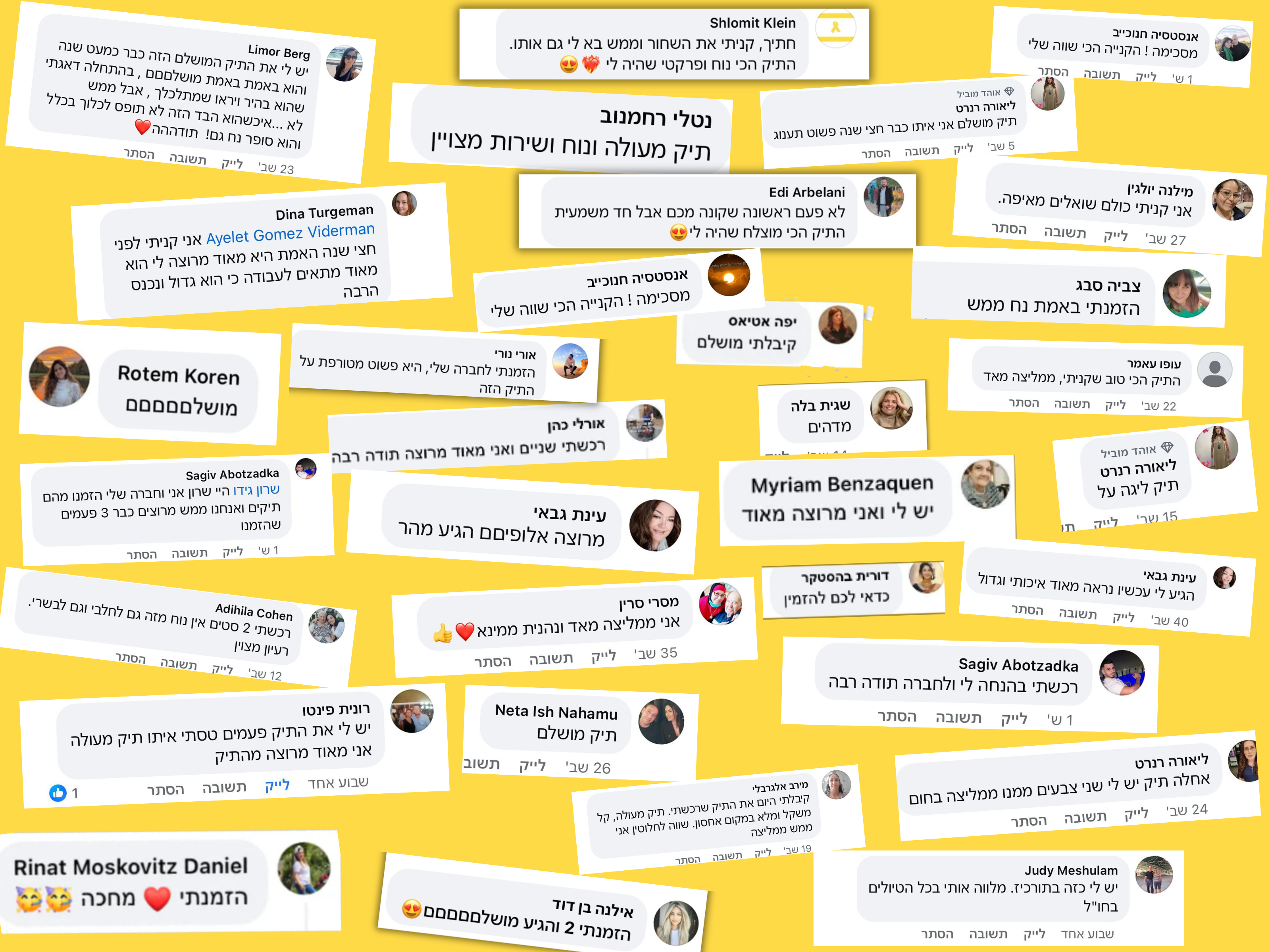 מחפשים ביקורות על Bagly? רוצים לדעת מה באמת חושבים עלינו? כאן תמצאו המלצות אמיתיות מלקוחות שלנו – על השירות, המשלוח, איכות המוצרים, והחוויה הכללית. אלפי לקוחות כבר בחרו Bagly – וזה מה שהם מספרים.