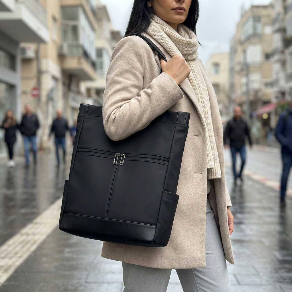 ניתן לשאת את תיק אדווה על הכתף או על הגב – והוא פשוט מתאים את עצמו אלייך. יש בו מקום לכל מה שאת צריכה לאורך היום, תאים חכמים שממוקמים בדיוק איפה שצריך, ועיצוב על־זמני שנראה נכון בכל הופעה ובכל סיטואציה . לקוחות קוראים לו " התיק המושלם " .