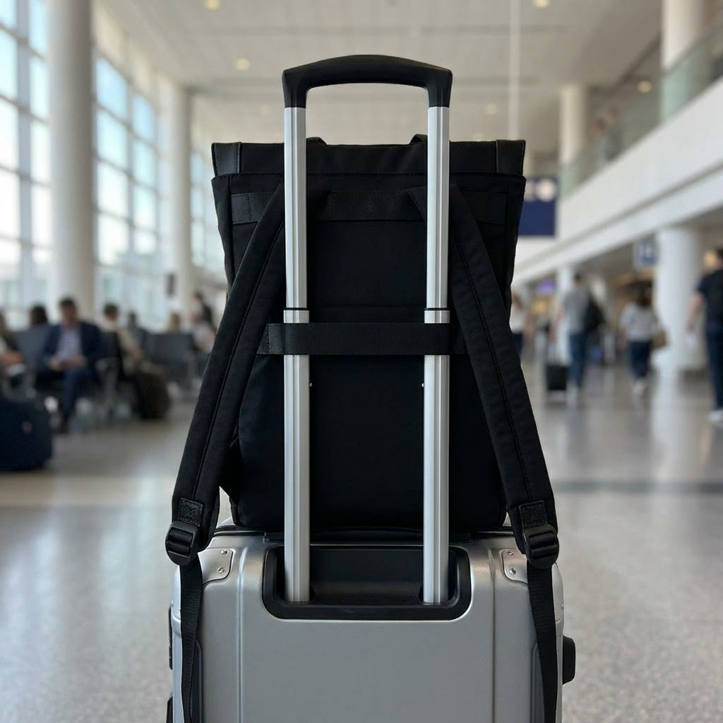 אדווה כוללת רצועת תלייה ייעודית שמתחברת בקלות למזוודה, ותא נסתר לאחסון דרכון וארנק. כך את נעה בנוחות בין מקומות, כשכל מה שחשוב לך נשאר קרוב, בטוח ובהישג יד.