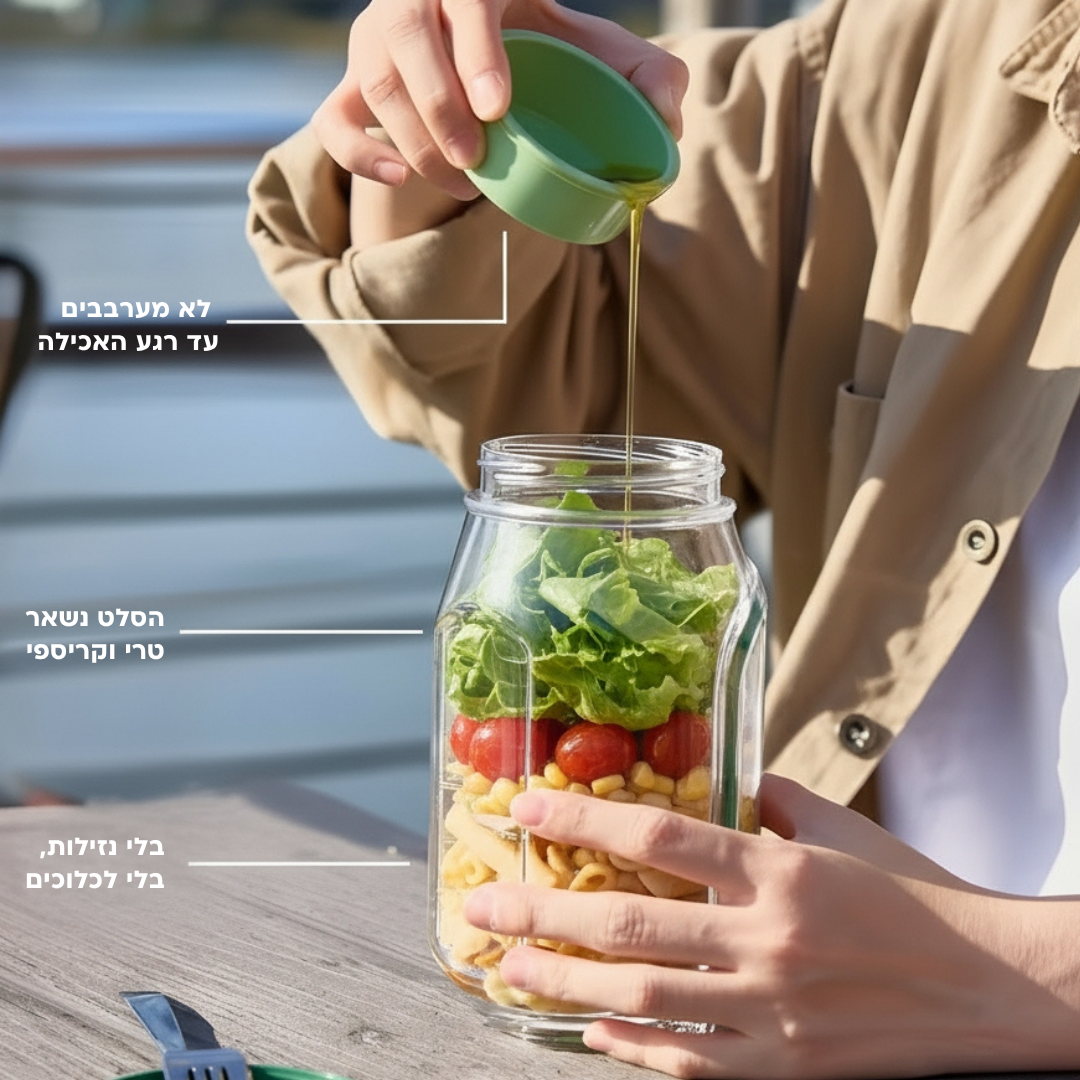 מצאנו לך את הפתרון המושלם לאוכל בעבודה ובלימודים לשלם 66 ₪ על סלט מגעיל בחוץ כל יום ?תתחילו להכין לבד - סלט טרי, שנשאר קראנצ'י כל היום בעזרת הפרדה בין הירקות לרוטב חוסכים אלפי שקלים בחודש, אוכלים בריא ויורדים במשקל בלי להרגיש שזה “דיאטה”. פשוט גאונות במיכל אחד