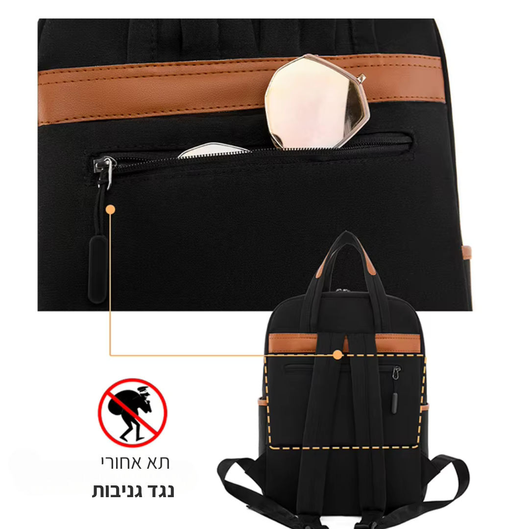 - בעל תא אחורי בגב התיק למניעת גניבות