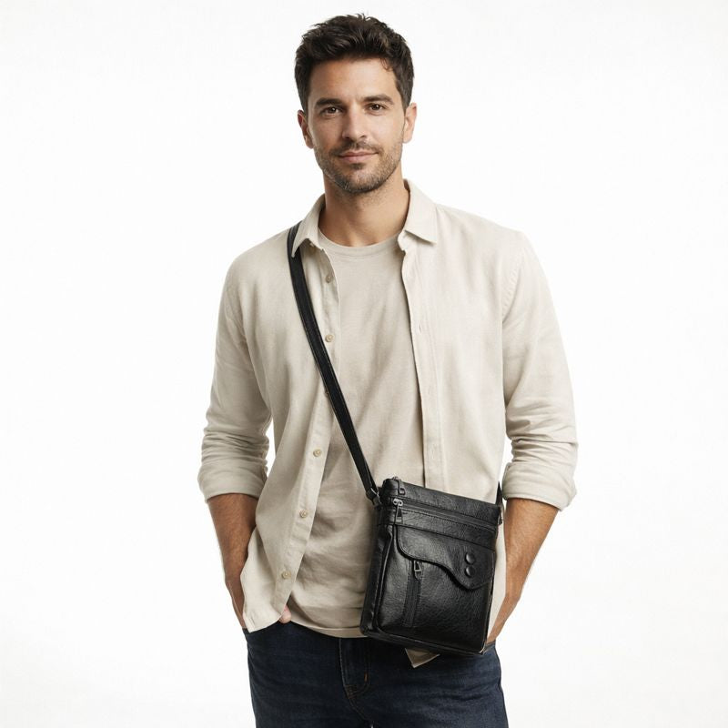 תיק צד בסגנון וינטג’י יוקרתי עם נוכחות, שמתאים לגברים ולנשים ומרגיש הרבה מעבר למה שהגודל החיצוני משדר. הנפח הפנימי מפתיע ומאפשר להכניס טלפון גדול, ארנק, מפתחות וחפצים נוספים בזכות חלוקת תאים חכמה ונגישה. העור במראה מחוספס מעניק אופי וסטייל על־זמני שמשתבח עם הזמן, והמבנה הדק יושב צמוד לגוף ונוח לאורך כל היום. זה תיק שנותן תחושת סדר,