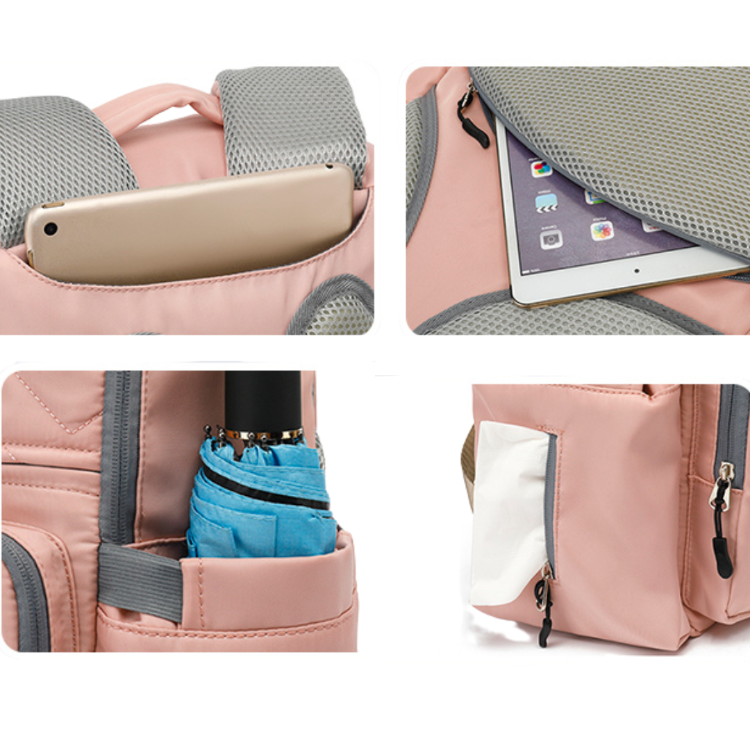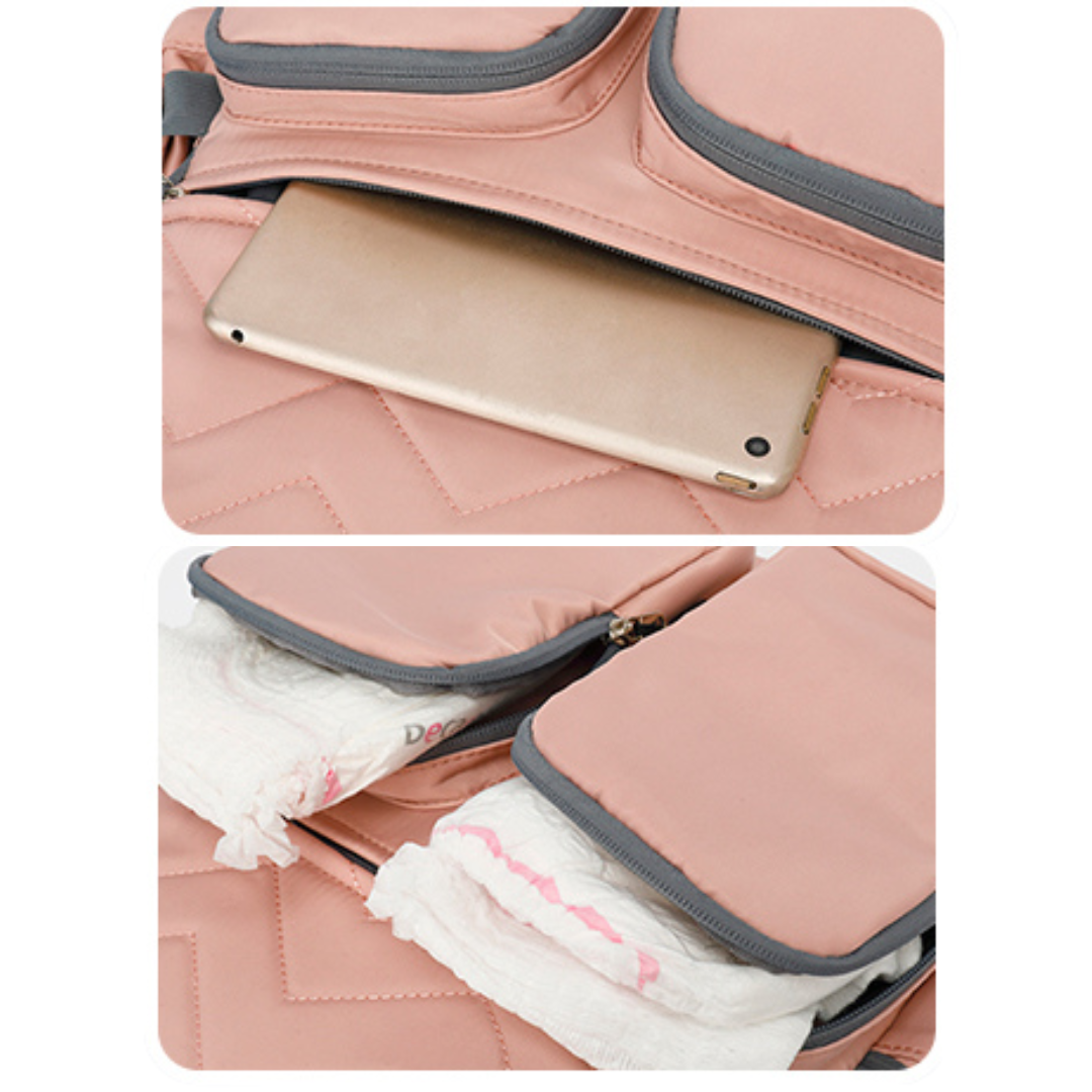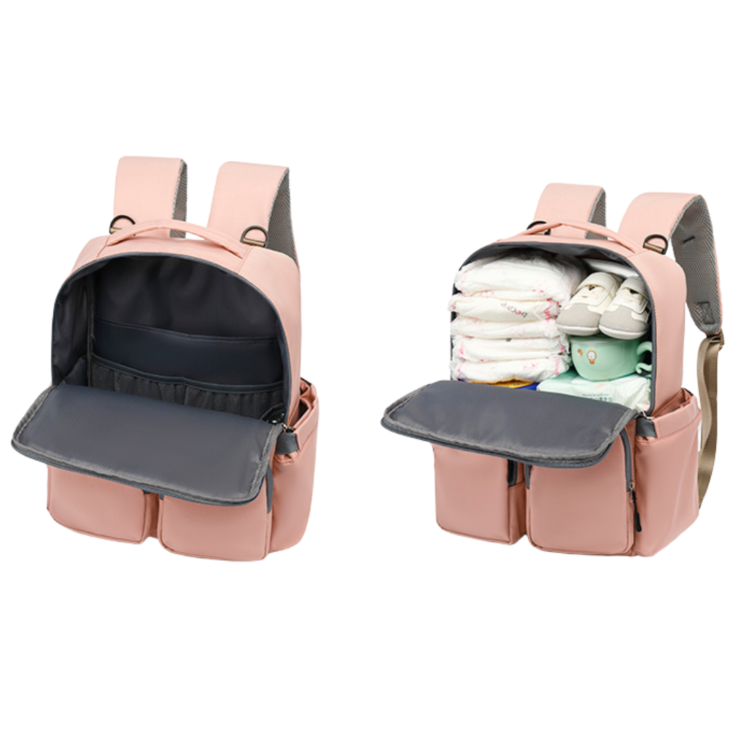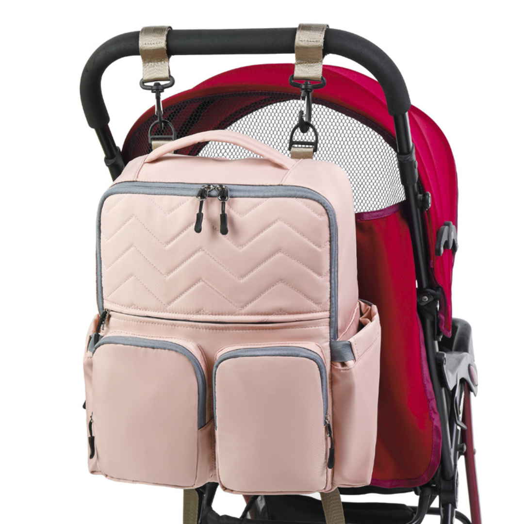 - רצועות גב מתכווננות ומרופדות במיוחד לנוחות מקסימלית עם קליפסים ייחודיים מובנים ברצועות לתלייה קלה ונוחה על העגלה.
