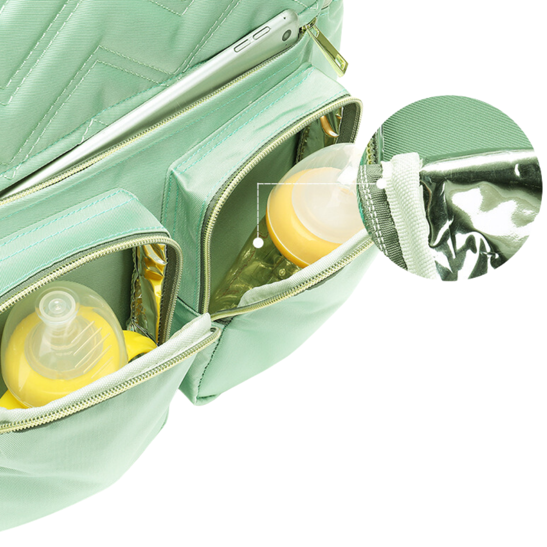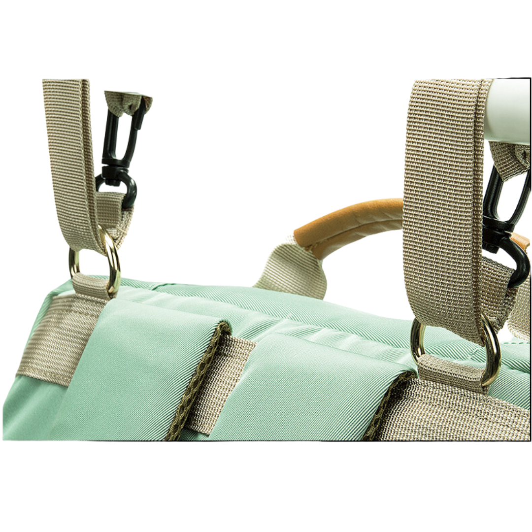 - רצועות גב מתכווננות ומרופדות במיוחד לנוחות מקסימלית עם קליפסים ייחודיים מובנים ברצועות לתלייה קלה ונוחה על העגלה.
