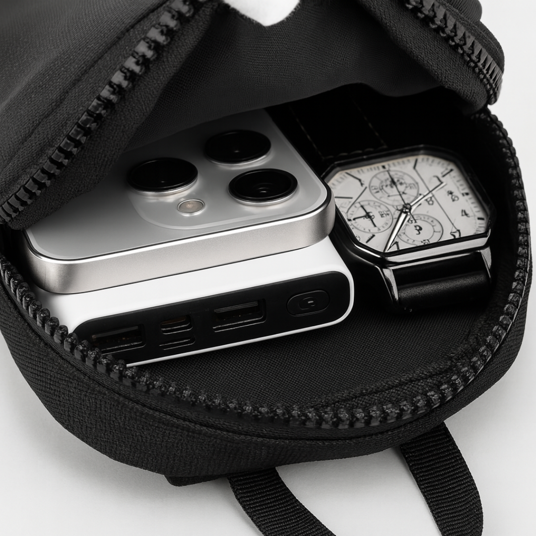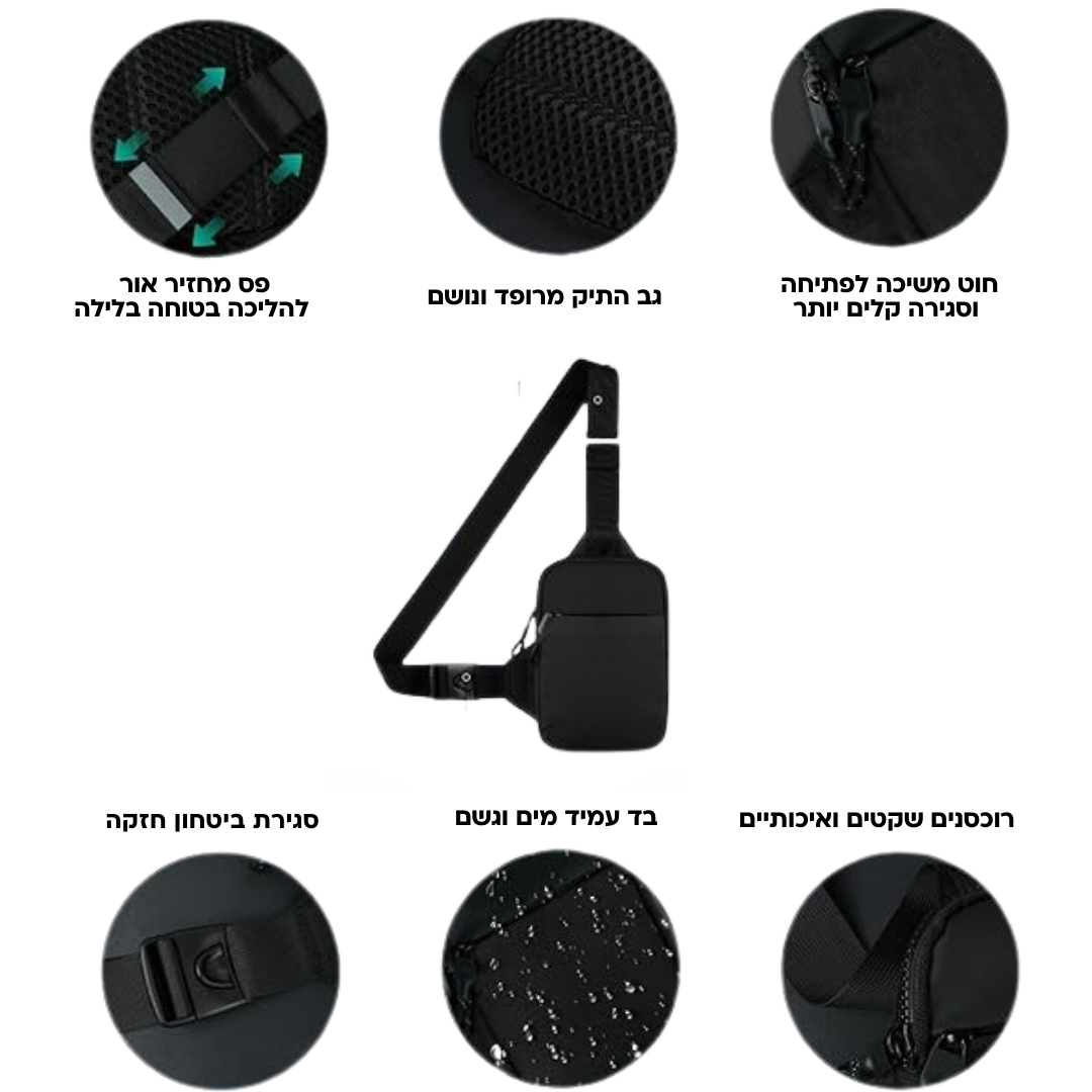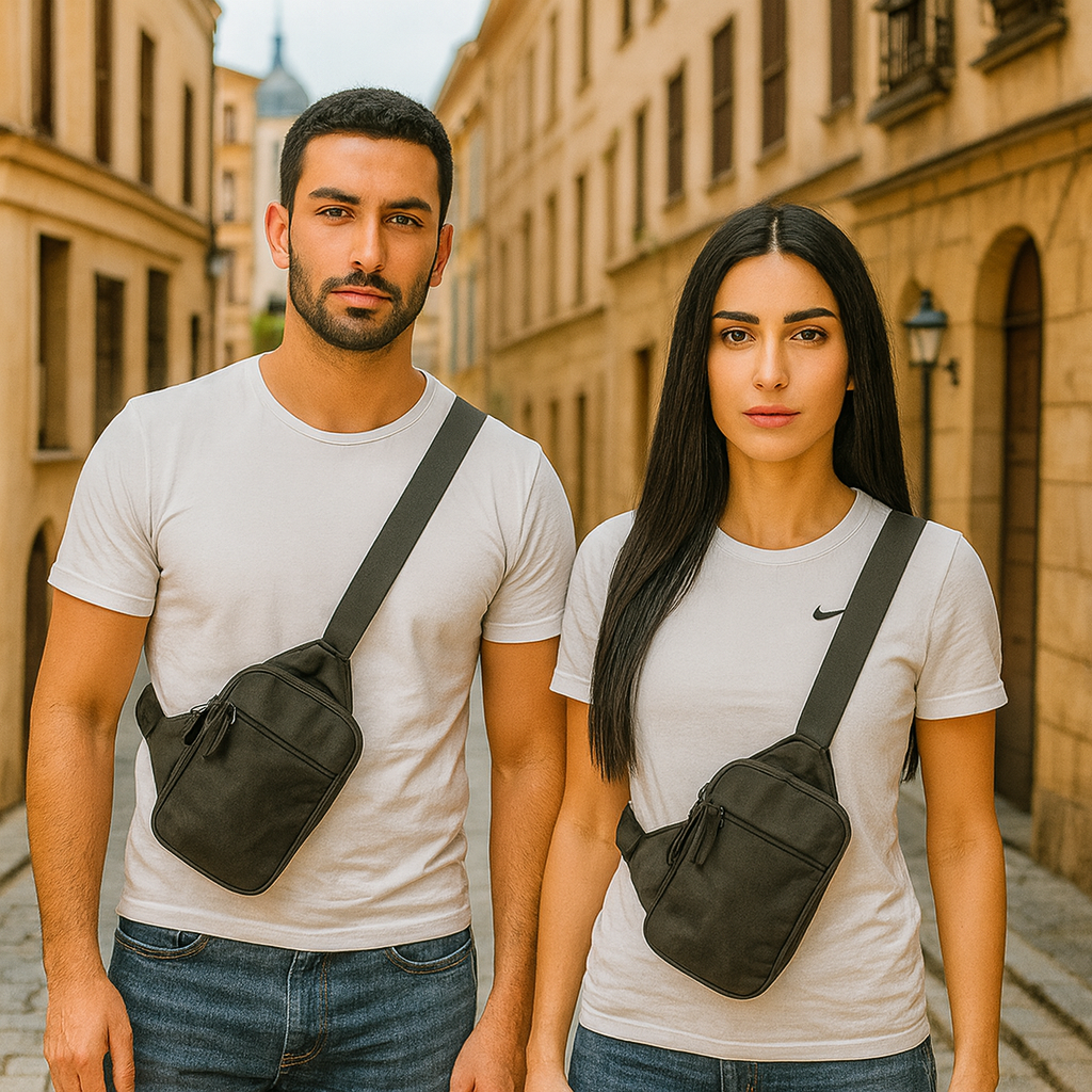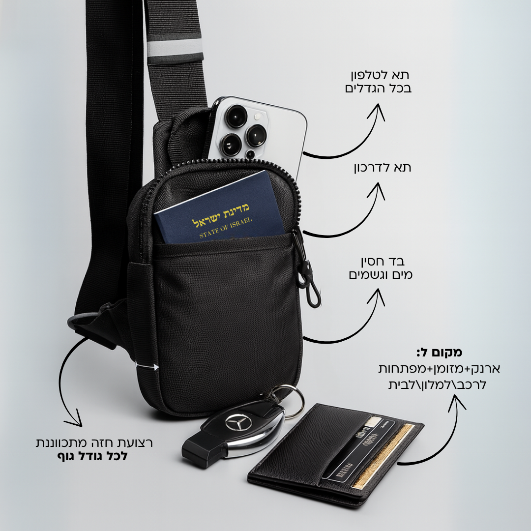 הכירו את SafeChest – תיק חזה קומפקטי שמחליף את הכיסים המפוצצים ותיק הגב המסורבל. כל מה שצריך נכנס בקלות – מפתחות לרכב ולמלון, ארנק, טלפון ואפילו דרכון. עמיד במים, נוח לשימוש וקל להחבאה מתחת לג’קט או חולצה – ככה מטיילים היום בראש שקט.